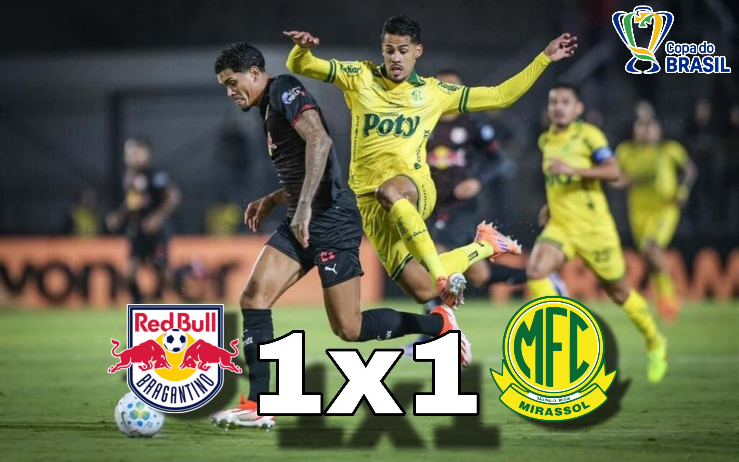 O Red Bull Bragantino empatou por 1 a 1 com o Mirassol, no Nabi Abi Chedid, pelo jogo de ida da quinta fase da Copa do Brasil 2026. O resultado mantém o confronto completamente aberto para a partida decisiva.