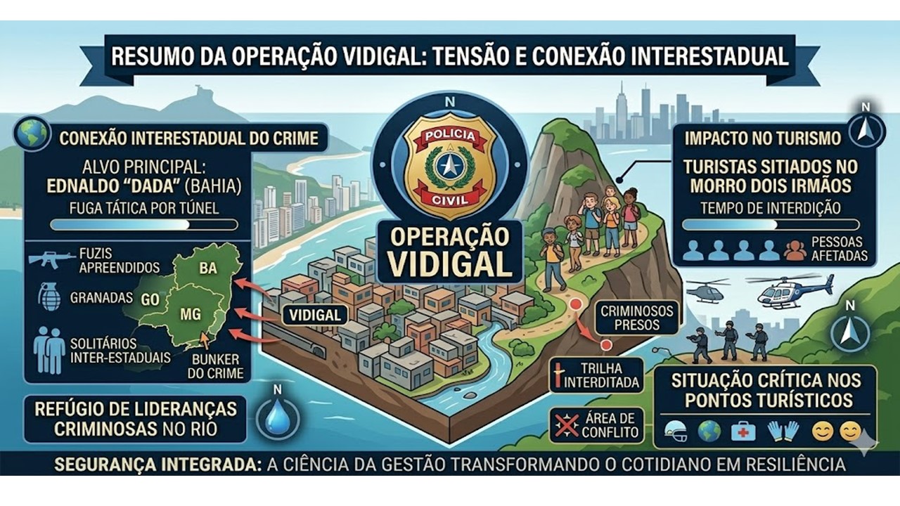 A fragilidade do cartão-postal: O episódio de hoje nos ensina que a segurança pública não pode ser tratada de forma isolada por estado. Quando um líder do tráfico baiano consegue sitiar centenas de turistas em um ponto turístico do Rio, a ciência da gestão prova que a inteligência deve ser nacional.