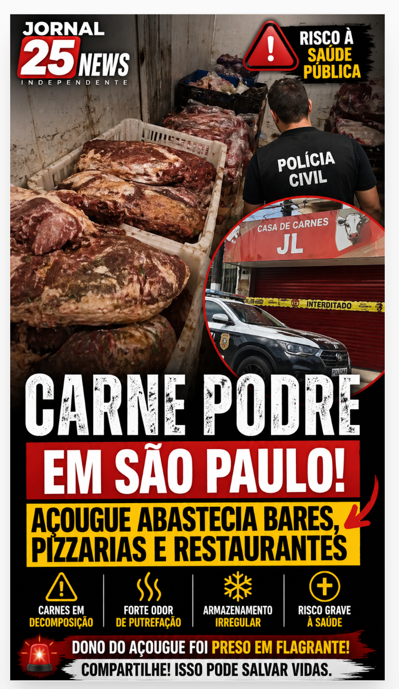 A investigação começou após policiais civis serem abordados por um pedestre que relatou um odor insuportável vindo de um estabelecimento na Avenida Vila Ema, nº 5744. Ao entrarem no local, os agentes confirmaram o cenário de horror: um pequeno açougue com condições de higiene precárias e uma câmara fria repleta de produtos com aspecto visual e odor de podridão.