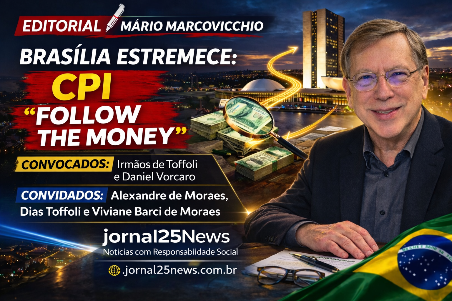 BRASÍLIA ESTREMECE-CPI-” FOLLOW THE MONEY”- Convidados: Alexandre de Moraes, Dias Toffoli e Viviane Barci de Moraes.