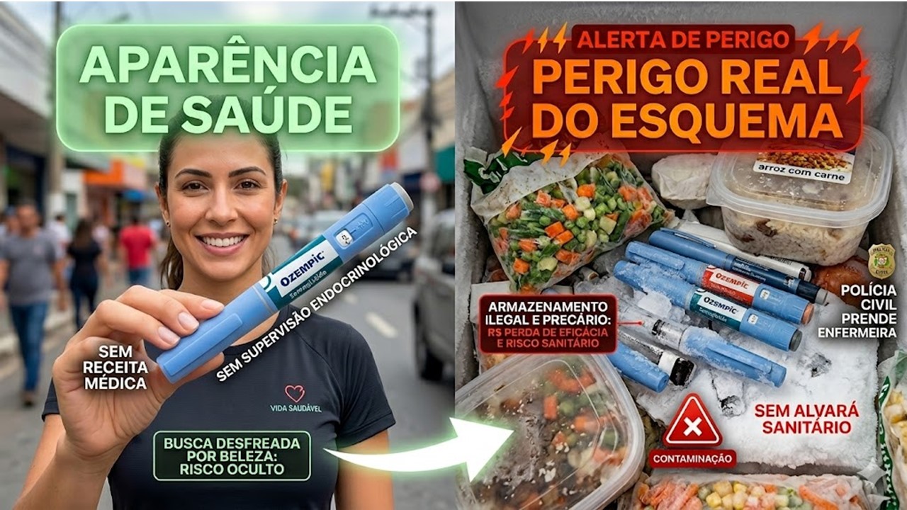 Os Riscos: A venda ilegal de medicamentos não é um crime sem vítimas. O uso dessas canetas sem supervisão de um endocrinologista, pode causar sérios efeitos colaterais, como pancreatite aguda, problemas renais graves e desidratação. O Secretário de Segurança da região, em nota oficial, alertou: “Estamos diante de um atentado à saúde pública. Usar a profissão de enfermeira para dar um verniz de legalidade a um crime é inaceitável. A população não pode cair nesse conto do emagrecimento milagroso e barato”.