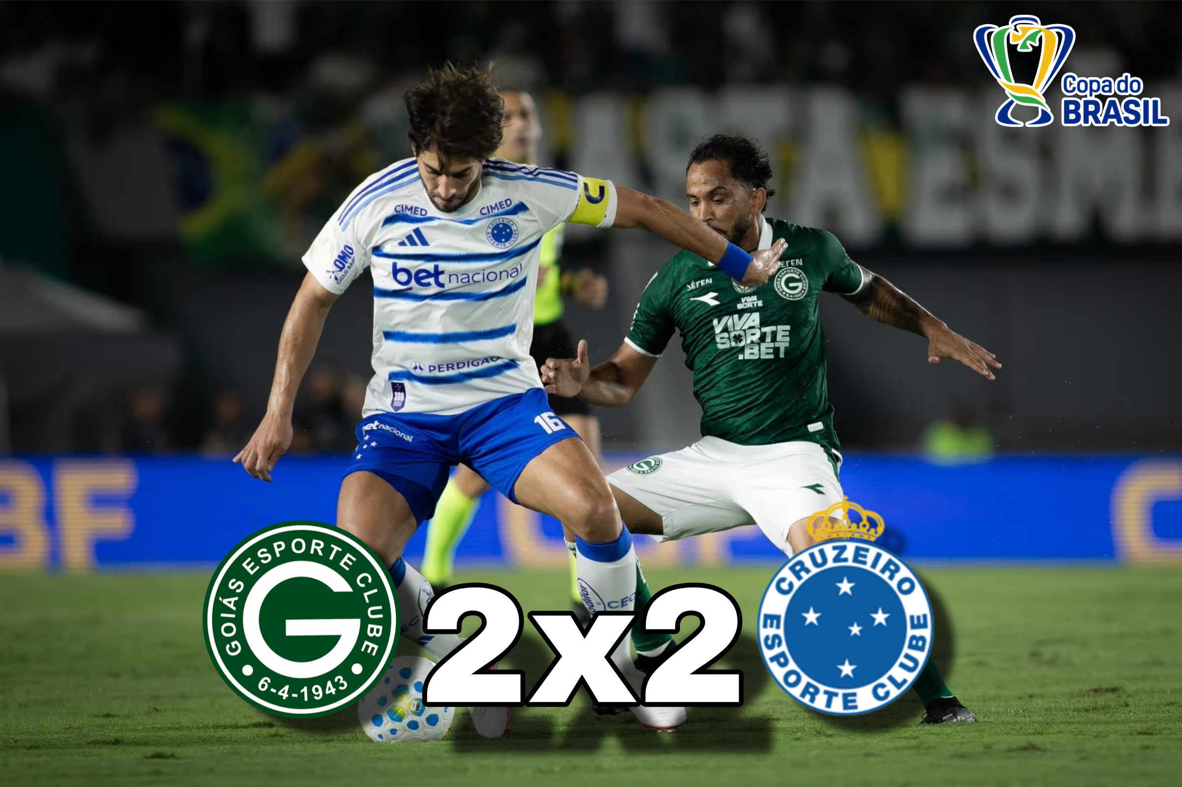 O Goiás buscou um empate heroico por 2 a 2 contra o Cruzeiro, na noite de 22 de abril de 2026, no Serra Dourada, pelo jogo de ida da quinta fase da Copa do Brasil 2026. O gol salvador saiu nos acréscimos do segundo tempo e deixou a decisão totalmente em aberto.