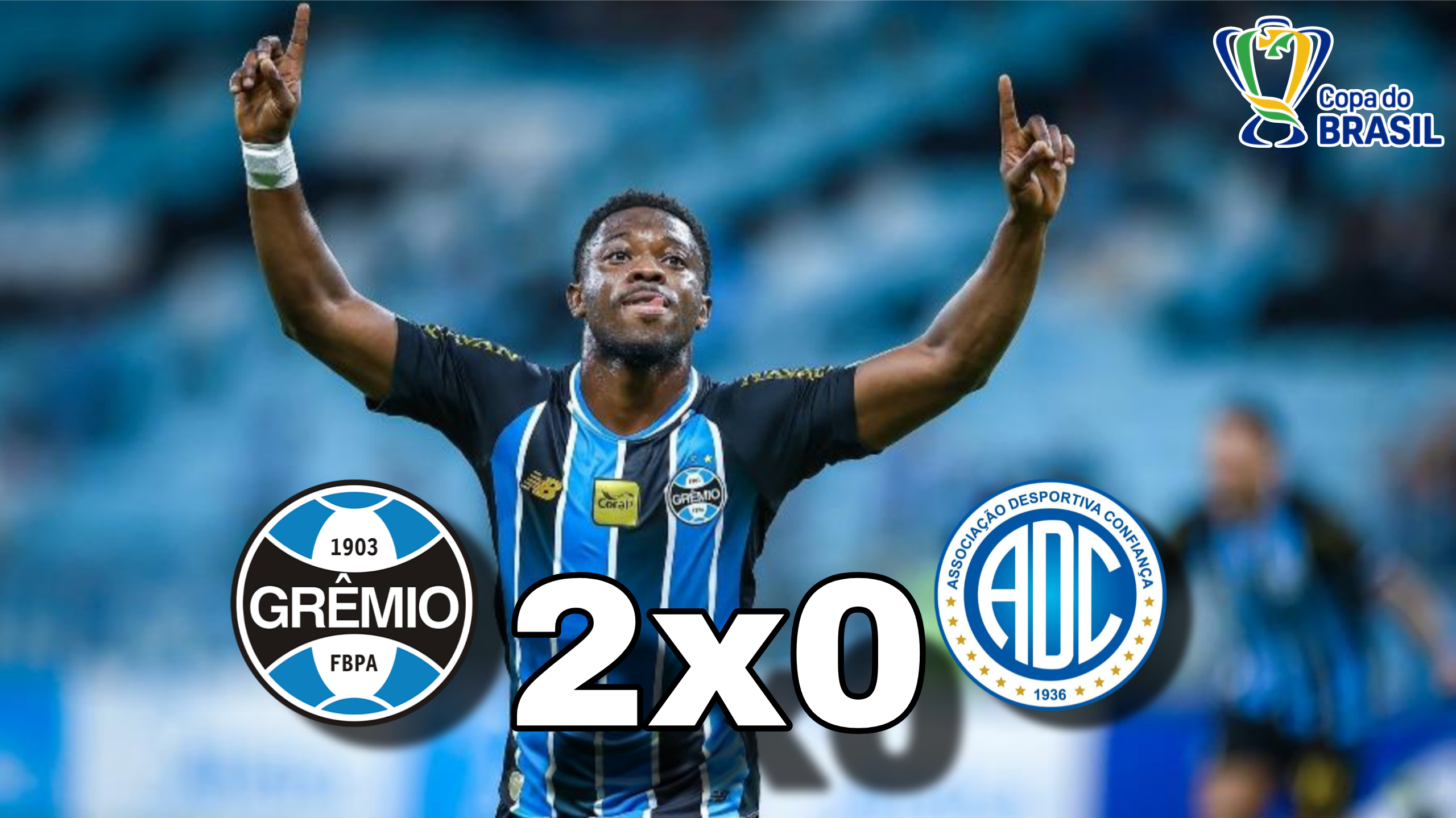 O Grêmio Foot-Ball Porto Alegrense venceu o Associação Desportiva Confiança por 2 a 0 no jogo de ida da quinta fase da Copa do Brasil 2026, na Arena do Grêmio, e abriu boa vantagem no confronto eliminatório.
