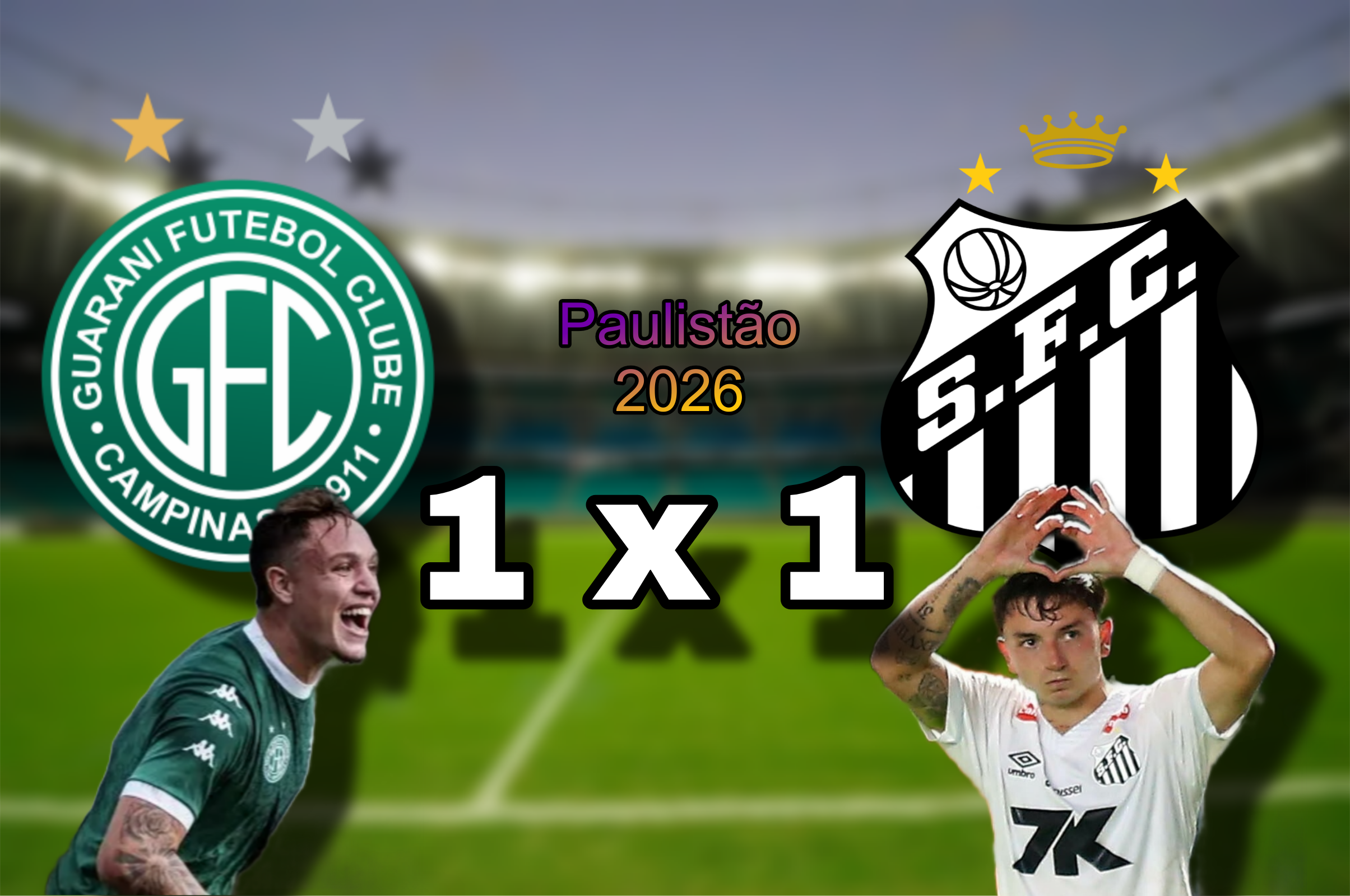 Quando tudo parecia encaminhar para a vitória santista, o Guarani foi buscar o empate no último minuto da partida, aos 51 minutos do segundo tempo.