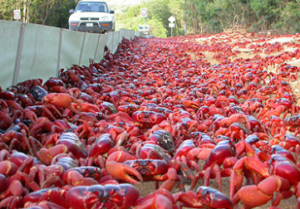 A natureza está em plena marcha e o calendário lunar está controlando a maior migração de crustáceos do planeta! Anualmente, entre outubro e dezembro, a Ilha Christmas (território australiano no Oceano Índico) é palco de um fenômeno espetacular: entre 50 milhões e 100 milhões de caranguejos-vermelhos (Gecarcoidea natalis) deixam suas tocas nas florestas para desovar no mar! A jornada, que dura cerca de seis noites, conta com a ajuda humana para garantir a segurança dos animais, em uma operação que inclui bloqueio de estradas e voluntários!