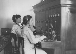 Antes da automação das centrais telefônicas, as ligações eram feitas manualmente por telefonistas, que conectavam fios para completar as chamadas. A modernização das telecomunicações eliminou essa função, substituída por sistemas digitais automáticos.