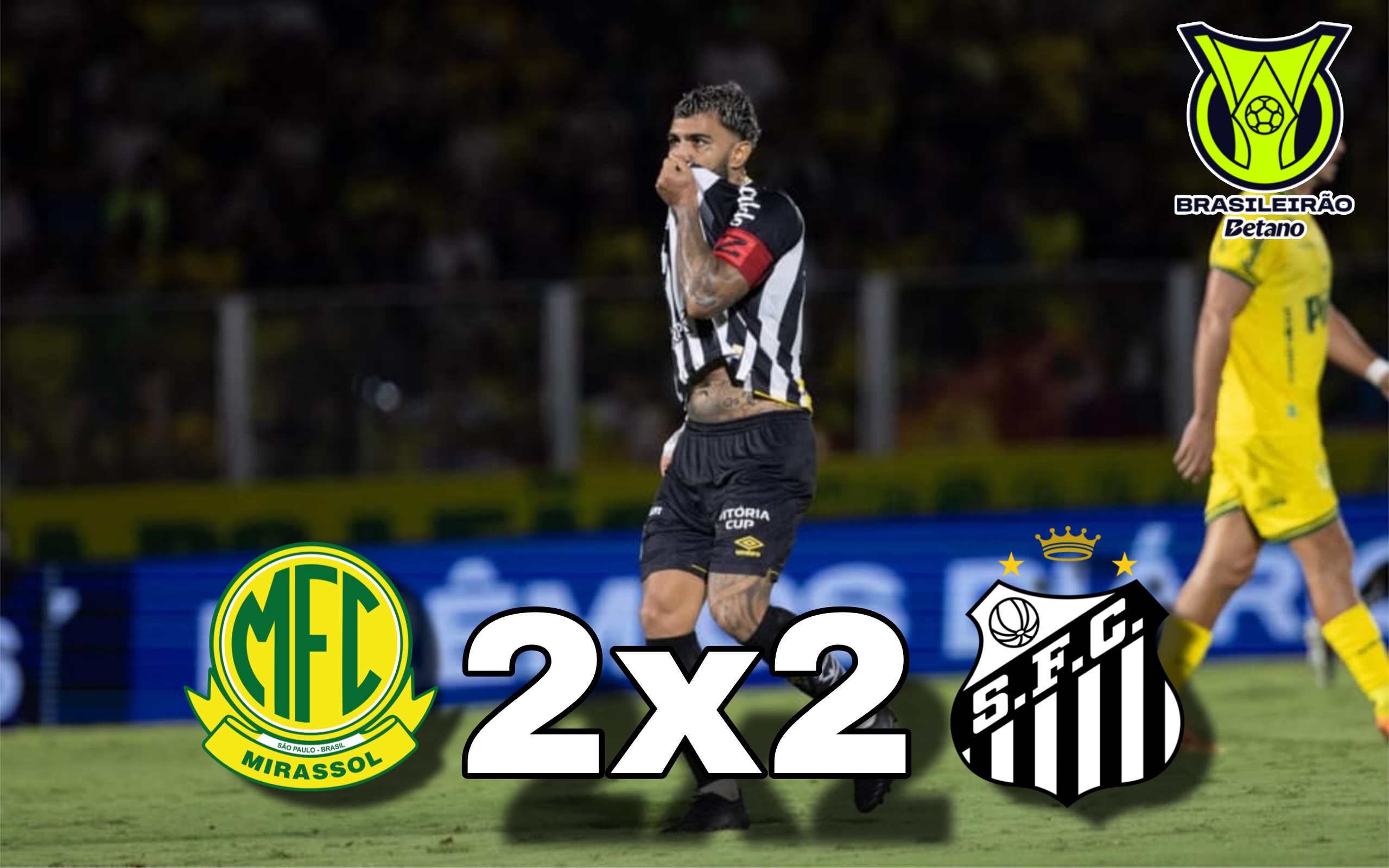 Quando o resultado parecia encaminhado, o Santos reagiu. Aos 35 minutos do segundo tempo, Gabigol apareceu bem dentro da área e diminuiu o placar. Pouco depois, já aos 43 minutos, o atacante voltou a balançar as redes, desta vez em cobrança de pênalti, garantindo o empate santistae evitando a derrota fora de casa.